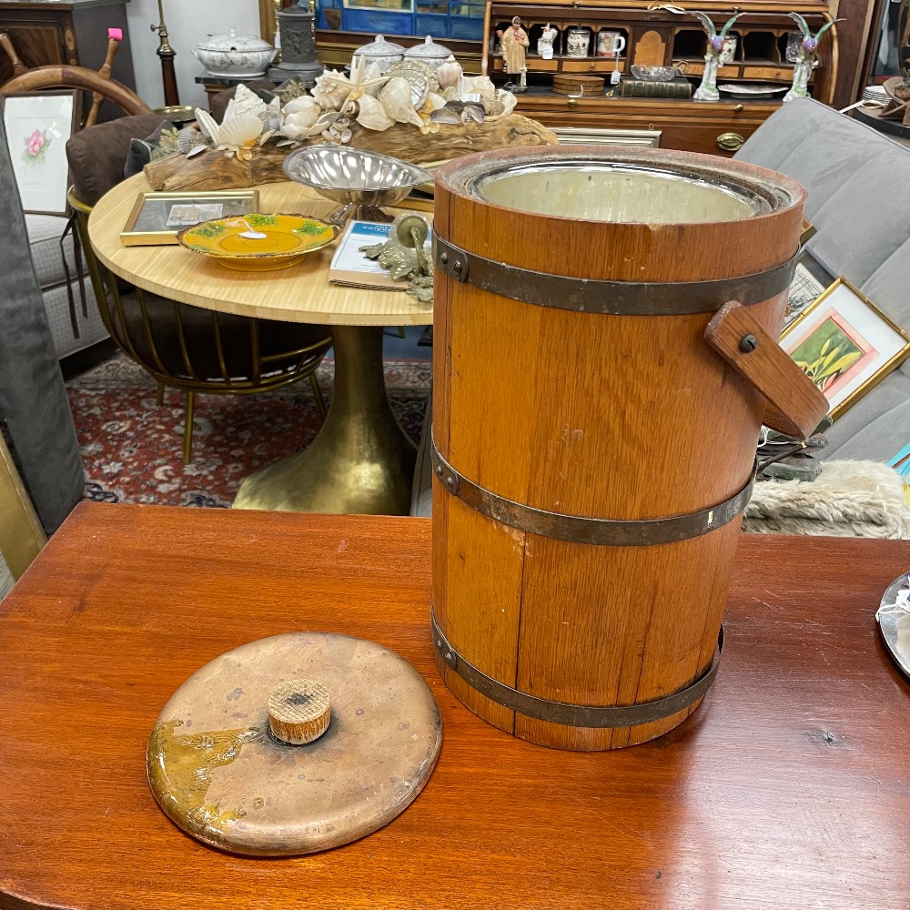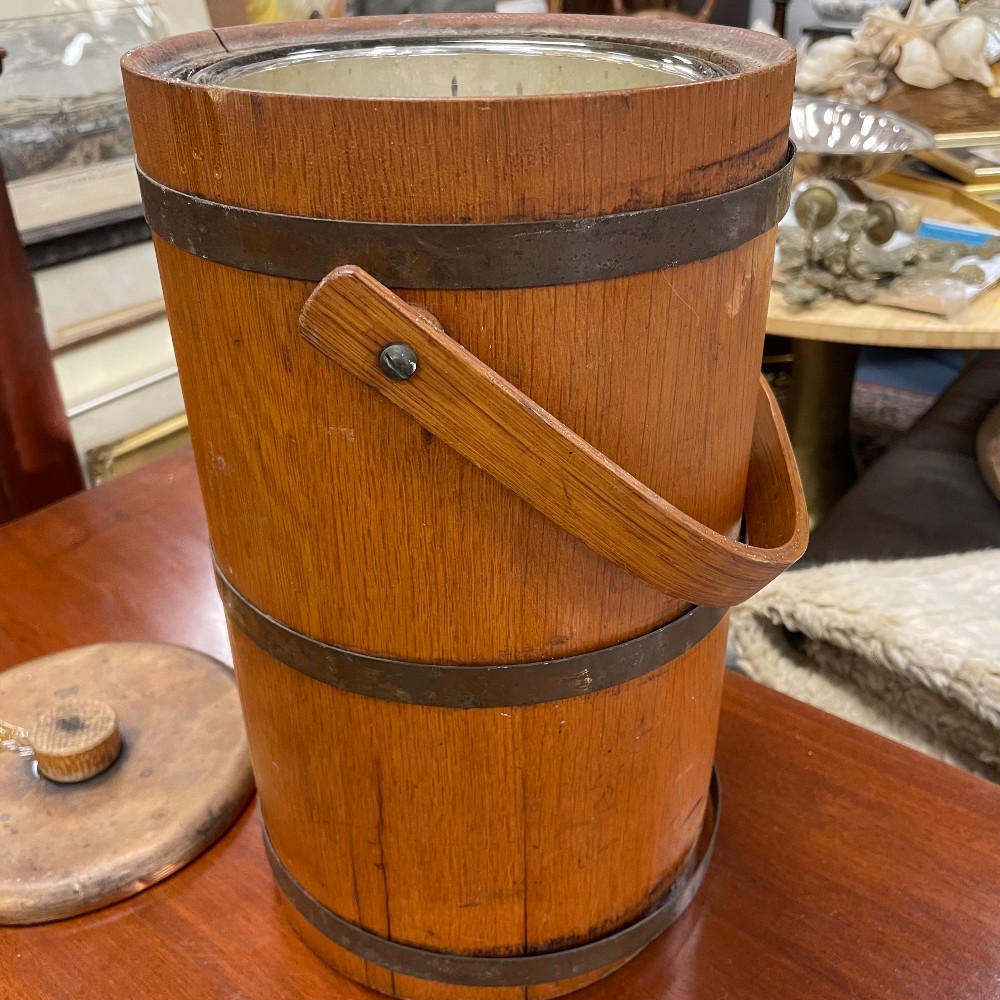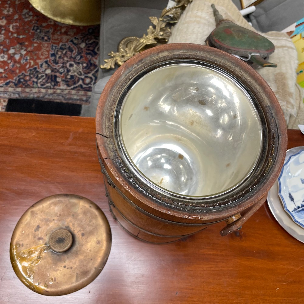 6900-39 Antique Wooden Firkin Bucket w/ Silver Lining