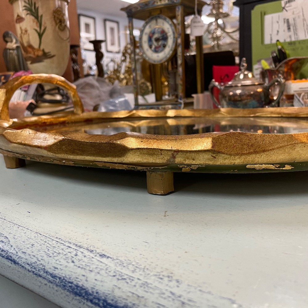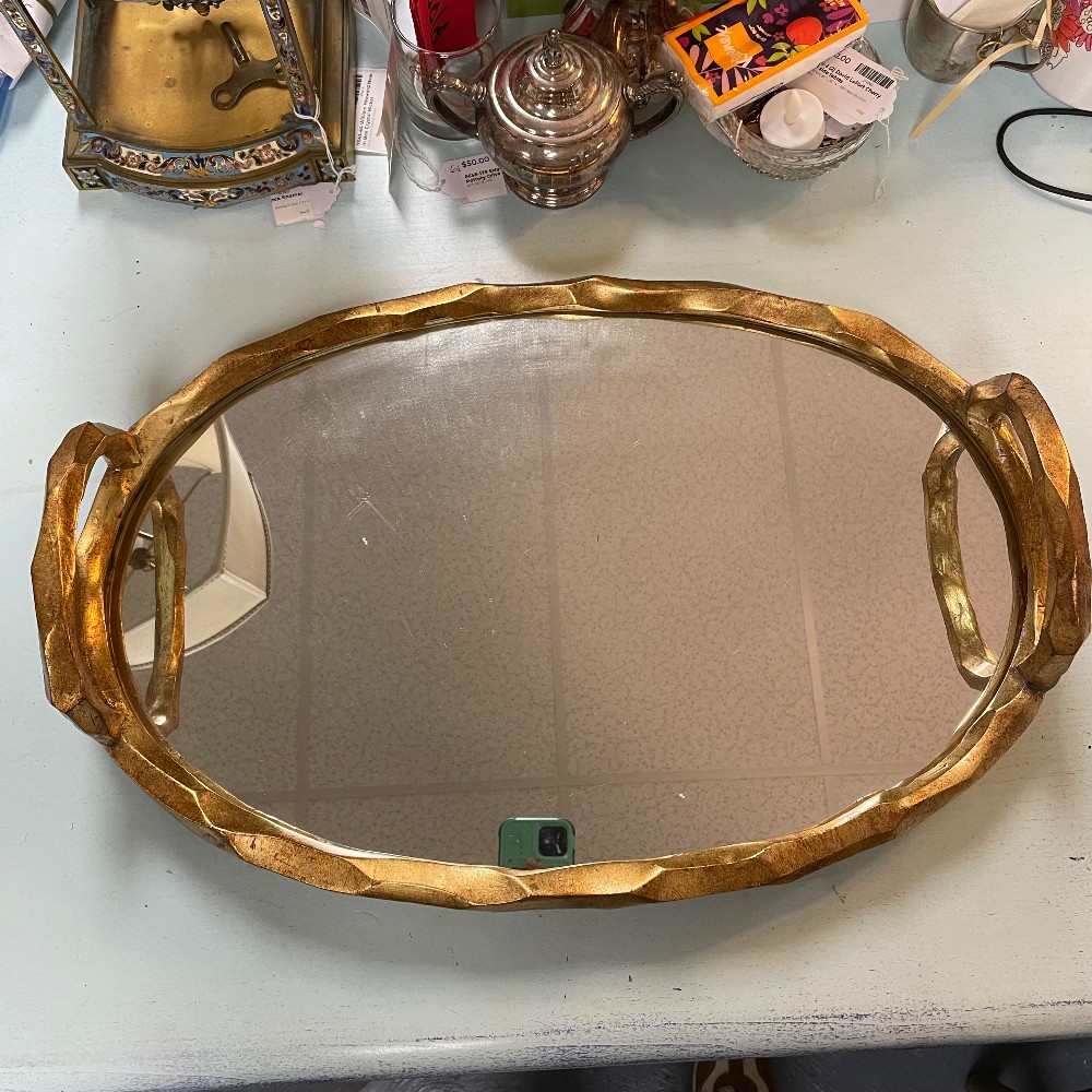Two separate pieces/stand & mirror. Measuring 21 1/4"L x 14 3/4"D x 5"T. Condition as pictured.